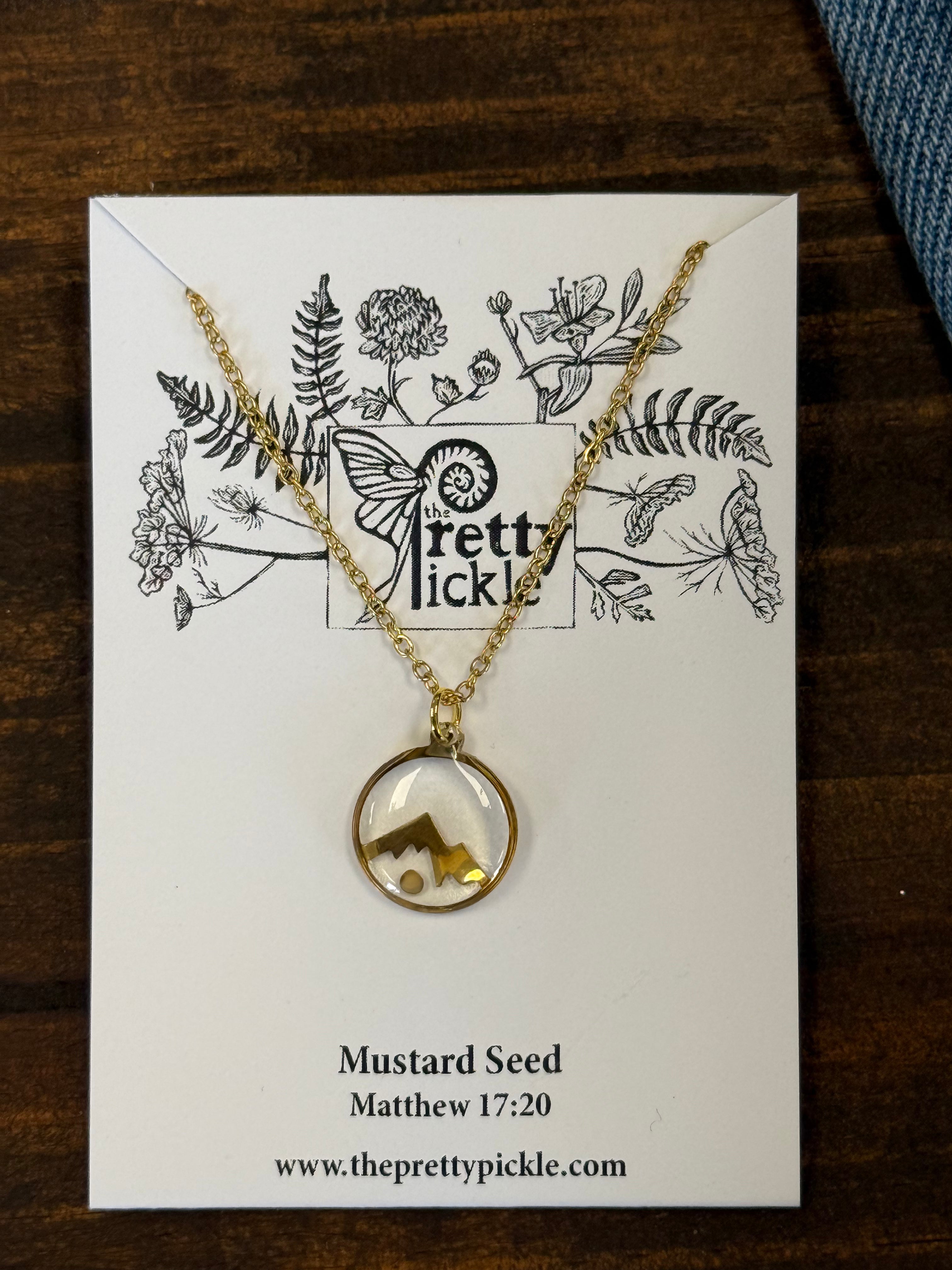 This beautiful necklace has a powerful meaning—representing the faith of a mustard seed mentioned in Matthew 17:20. Use this piece to share your faith in style.